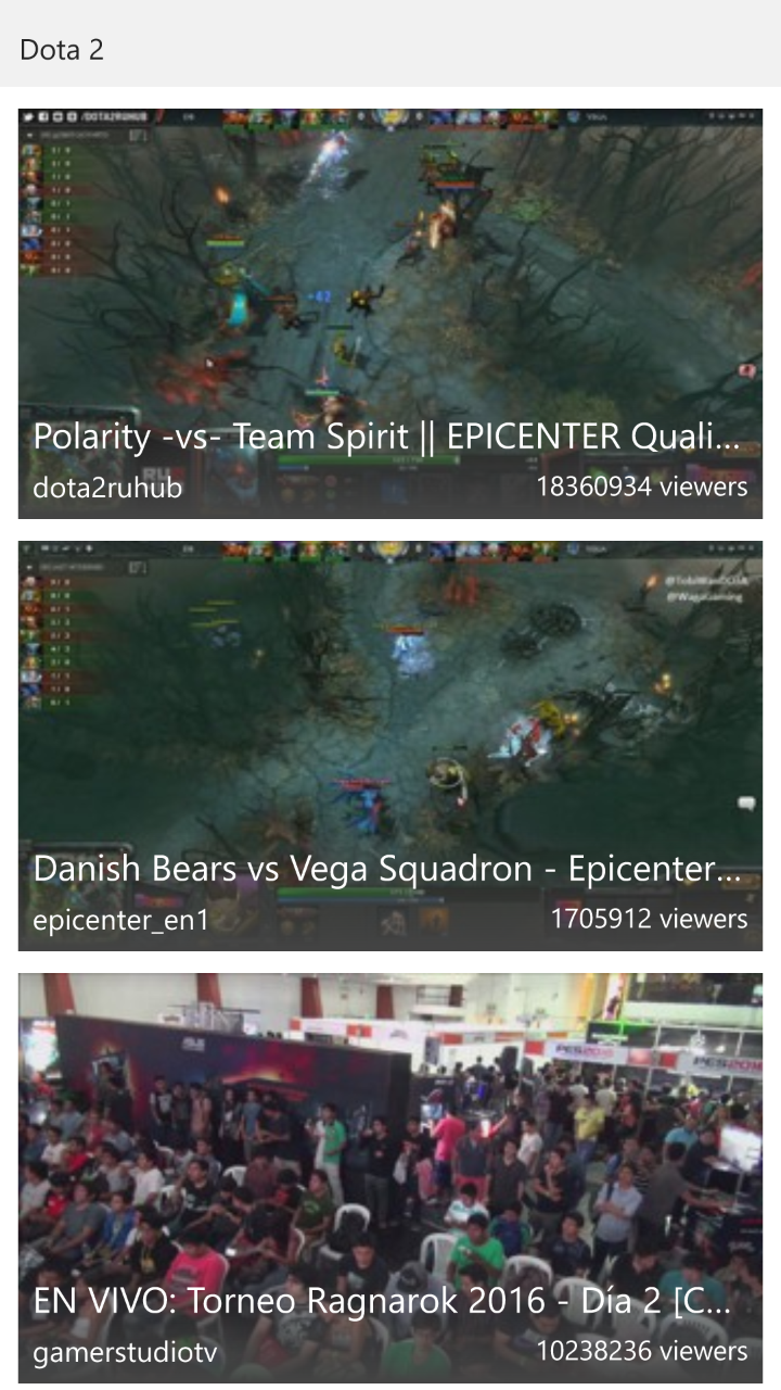 На платформе Windows Phone 8 присутствует официальное приложение для просмотра трансляций на сервисе Twitch.tv, но оно не оптимизировано для Windows 10 Mobile, не поддерживает режим Continuum, а также эта программа не носит характер универсальной. Но зато недавно вышло приложение Suto Stream, которое создано как для мобильной, так и для десктопной Windows 10.